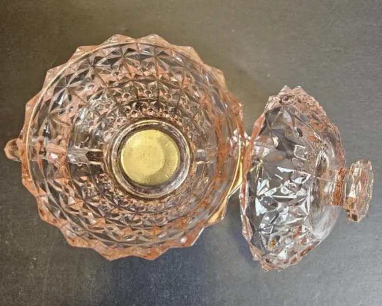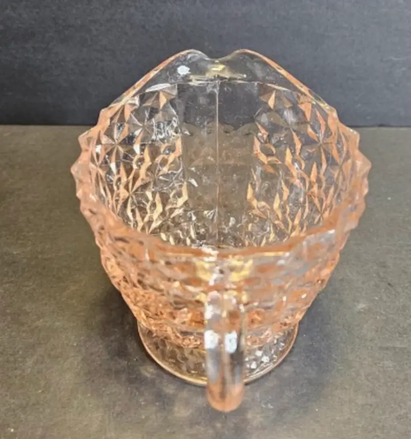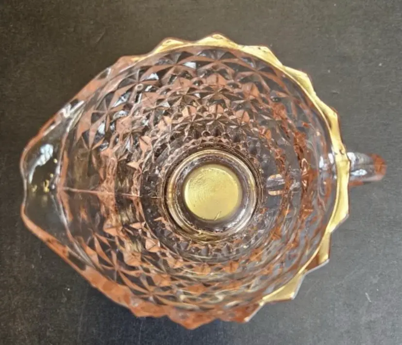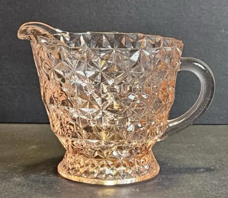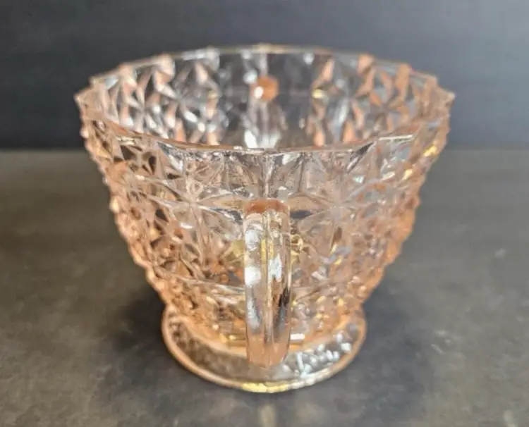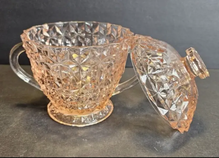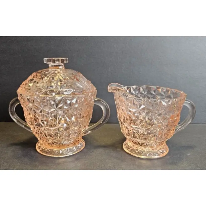 Jeanette glass company begin production in 1898. In 1924 they shifted entirely to the manufacturer of tableware. I can’t find an age on this piece but it was me sometime between 1924 and the 1940s. It’s a gorgeous, three-piece set consisting of a creamer a sugar ball with the sugar bowl that. All three pieces are in great condition for their age. Buy Now to own a piece of history as this company is no longer in business.